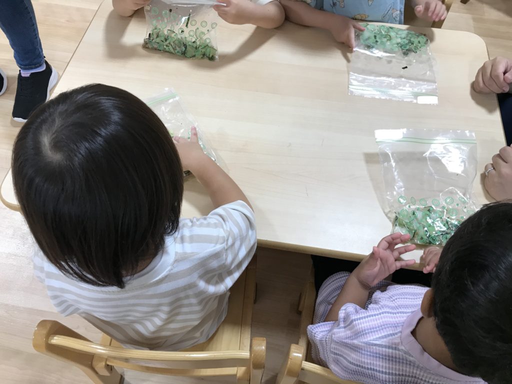 にじぐみ(3歳児クラス)さんが、ユーカリ農園で採れた野菜を使って「浅漬け作り」を行いました。