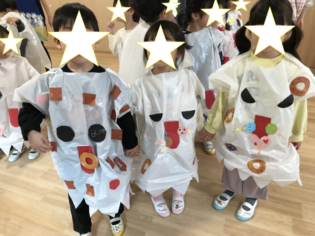 今週金曜日はハロウィンということで、保育園では今日、幼児3クラスでハロウィンの雰囲気を楽しみました。