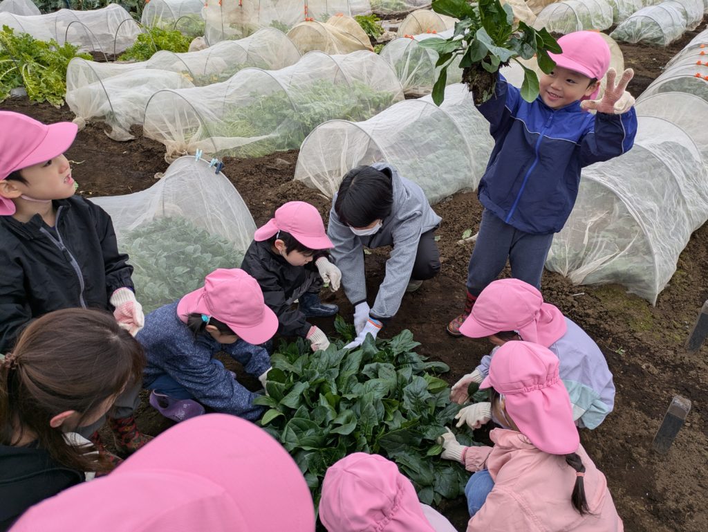 今日は、あおぞら組さんが農園にほうれんそうの