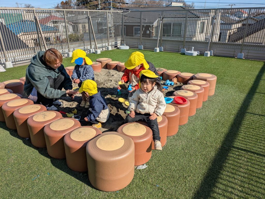 ブログ 2026.01.30砂場遊び 今日は屋上園庭で遊びました。 近頃、おままごとが大好きなきぼう組さん。 カップに砂を入れてごはんを作ると、美味しそうに 食べるまねっこをしていました。 「はい、どうぞ」「ありがとう」の先生とのやりとりも 楽しんでいましたよ。 ◀前ページ 次ページ▶ ブログ 一覧 関連記事 2026.04.03閲覧数7ラディッシュの種まき 2026.04.02閲覧数14畑のブログ③ 2026.04.01閲覧数15入園、進級おめでとう。 ブログ